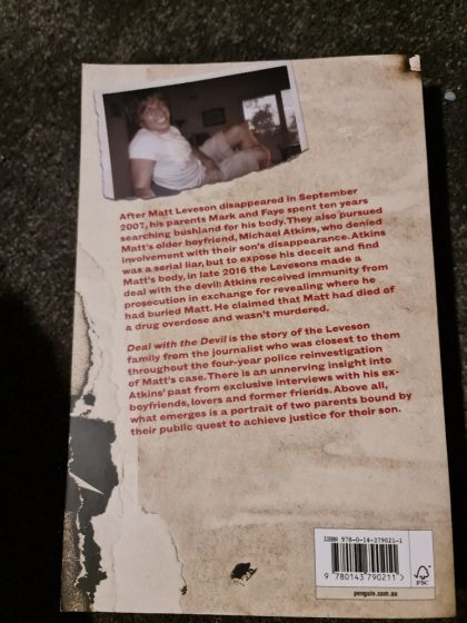What Mark and Faye Leveson have endured to discover the truth about the mysterious death of their son Matt is unfathomable. For the ten years after Matt's disappearance in September 2007, they tirelessly searched bushland for his body and doggedly pursued the man they believed responsible, Michael Atkins. Matt's older boyfriend always denied involvement with their son's disappearance, despite the compelling evidence stacked against him. Atkins was, in fact, a serial liar. But to expose his deceit and achieve their main objective, to find Matt's body, the Levesons agreed in late 2016 to make a deal with the devil. In an unprecedented move, Atkins received immunity from prosecution in exchange for revealing where he had buried Matt. Atkins, however, claimed that Matt had died of a drug overdose and wasn't murdered. Deal with the Devil is the story of the Leveson family from the journalist who was closest to them throughout the four-year police reinvestigation of Matt's case. This is a firsthand account of the Levesons' ordeal, from their harrowing decision to grant Atkins immunity to the extraordinary search for Matt's body in Sydney's Royal National Park. There is also an unnerving insight into Atkins' past, as well as exclusive interviews with his ex-boyfriends, lovers and former friends. But, above all, what emerges is a portrait of a loving family, and of two parents bound by their public quest to achieve justice for their son.