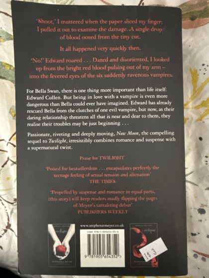 I stuck my finger under the edge of the paper and jerked it under the tape. 'Shoot,' I muttered when the paper sliced my finger. A single drop of blood oozed from the tiny cut. It all happened very quickly then. 'No!' Edward roared ... Dazed and disorientated, I looked up from the bright red blood pulsing out of my arm - and into the fevered eyes of the six suddenly ravenous vampires. For Bella Swan, there is one thing more important than life itself: Edward Cullen. But being in love with a vampire is more dangerous than Bella ever could have imagined. Edward has already rescued Bella from the clutches of an evil vampire but now, as their daring relationship threatens all that is near and dear to them, they realise their troubles may just be beginning ...