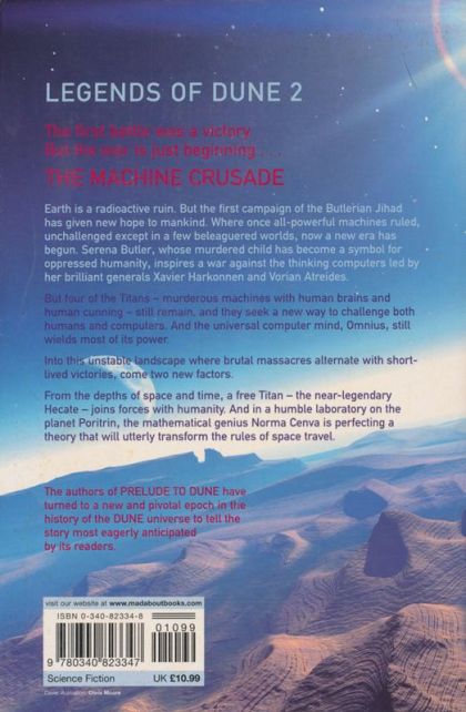 Earth is a radioactive ruin. But the initial campaign of the Butlerian Jihad has given new hope to mankind. Serena Butler, whose murdered child has become a symbol for oppressed humanity, inspires a war against the thinking computers led by Xavier Harkonnen and Vorian Atreides. But four of the Titans - murderous machines with human brains and human cunning - still remain. And the universal computer mind, Omnius, still wields most of its power. Into this unstable landscape come two new factors. From the depths of space and time, a free Titan - the near-legendary Hecate - joins forces with humanity. And in a humble laboratory on the planet Poritrin, the mathematical genius Norma Cenva is perfecting a theory that will utterly transform the rules of space travel.