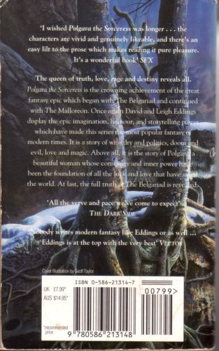 Her hair streaked white by her father's first touch, her mind guided by a mother she will not see again for centuries, Polgara begins life in her Uncle Beldin's tower, and in the prehistorical, magical Tree that stands in the middle of the Vale. There, she first learns the reaches of her powers. There, she assumes the bird shapes that will serve her on her adventures. And there she starts on the path toward her destiny as Duchess of Erat, shepherdess of the cause of good, adversary of Torak the One-Eyed Dragon God, and guardian of the world's last, best hope: the heir to the Rivan throne. Here is the legendary life story of a woman of wit, passion, and complex emotions, a woman born of two majestic parents who could not have been more unlike each other. Ordained to make peace and make war, to gain love and lose love, Polgara lives out her family's rich prophecy in the ceaseless struggle between the Light and the Dark.