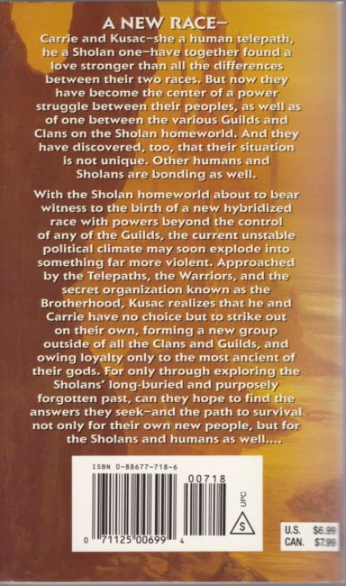 The third book in Lisanne Norman's Sholan Alliance long-running science fiction series of alien contact and interspecies conflictCarrie and Kusac—she a human telepath, he a Sholan one—have together found a love stronger than all the differences between their two races. But now they have become the center of a power struggle between their peoples, as well as of one between the various guilds and clans on the Sholan homeworld. And they have discovered, too, that their situation is not unique. Other humans and Sholans are bonding as well. With the Sholan homeworld about to bear witness to the birth of a new hybridized race with powers beyond any of the Guilds, the current unstable political climate may soon explode into something far more violent. Approached by the Telepaths, the Warriors, and the secret organization known as the Brotherhood, Kusac realizes that he and Carrie have no choice but to strike out on their own, forming a new group outside of all the Clans and Guilds, and owing loyalty only to the most ancient of their gods. For only through exploring the Sholans’ long-buried and purposefully forgotten past, can they hope to find the answers they seek—and the path to survival not only for their own new people, but for the Sholans and humans as well....