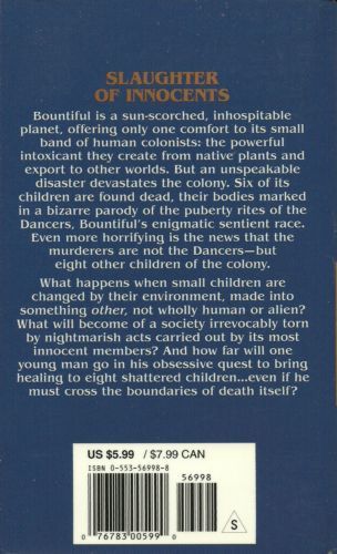 Bountiful is a sun-scorched, inhospitable planet, offering only one comfort to its small band of human colonists: the powerful intoxicant they create from native plants an export to other worlds. But an unspeakable disaster devastates the colony. Six of its children are found dead, their bodies marked in a bizarre parody of the puberty rites of the Dancers, Bountiful's enigmatic sentient race. Even more horrifying is the news that the murderers are not the Dancers--but eight other children of the colony. What happens when small children are changed by their environment, made into something "other," not wholly human or alien? What will become of a society irrevocably torn by nightmarish acts carried out by its most innocent members? And how far will one young man go in his obsessive quest to bring healing to eight shattered children...even if he must cross the boundaries of death itself?