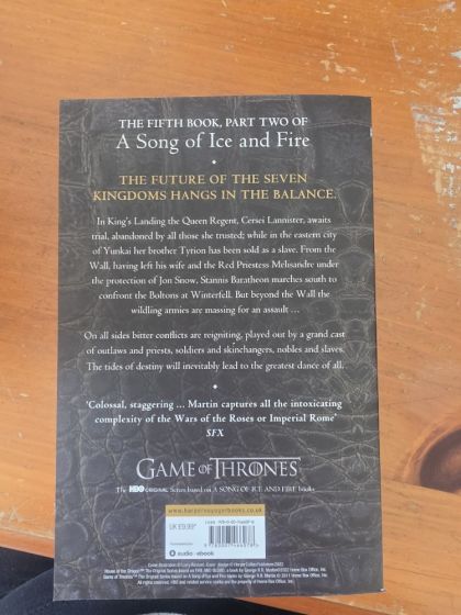 HBO's hit series A GAME OF THRONES is based on George R R Martin's internationally bestselling series A SONG OF ICE AND FIRE, the greatest fantasy epic of the modern age. A DANCE WITH DRAGONS: AFTER THE FEAST is the SECOND part of the fifth volume in the series. 'Vivid, rich, multi-layered and utterly addictive' Daily Express. The future of the Seven Kingdoms hangs in the balance. In King's Landing the Queen Regent, Cersei Lannister, awaits trial, abandoned by all those she trusted; while in the eastern city of Yunkai her brother Tyrion has been sold as a slave. From the Wall, having left his wife and the Red Priestess Melisandre under the protection of Jon Snow, Stannis Baratheon marches south to confront the Boltons at Winterfell. But beyond the Wall the wildling armies are massing for an assault... On all sides bitter conflicts are reigniting, played out by a grand cast of outlaws and priests, soldiers and skinchangers, nobles and slaves. The tides of destiny will inevitably lead to the greatest dance of all.