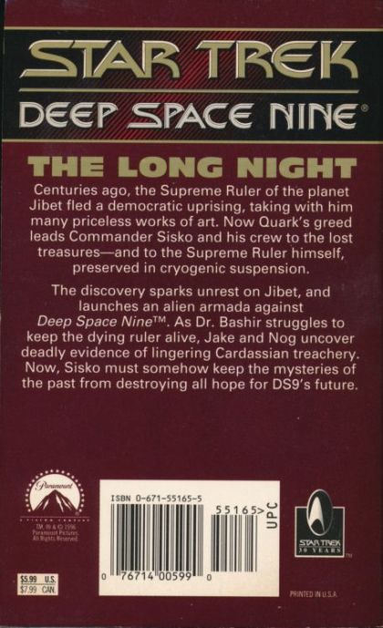 Centuries ago, the Supreme Ruler of the planet Jibet fled a democratic uprising, taking with him many priceless works of art. Now Quark's greed leads Commander Sisko and his crew to the lost treasures -- and to the Supreme Ruler himself, preserved in cryogenic suspension. The discovery sparks unrest on Jibet, and launches an alien armada against Deep Space Nine ™. As Dr. Bashir struggles to keep the dying ruler alive, Jake and Nog uncover deadly evidence of lingering Cardassian treachery. Now, Sisko must somehow keep the mysteries of the past from destroying all hope for DS9's future.