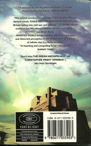 This second omnibus includes two of Christopher Priest's darkest novels. FUGUE FOR A DARKENING ISLAND tells of a Britain falling into civil war and anarchy - 'In the Wyndham tradition; but Wyndham's mellow sunsets have faded...' said Brian Aldiss. INVERTED WORLD brings together adventure, paradox and distorted perception in the tale of a planet of infinite size in a finite universe - 'A haunting and compelling book' thought the SUNDAY TIMES.