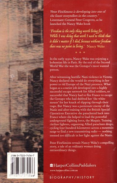 The number one bestselling biography of Australia's greatest war heroine - over 84,000 copies sold in its first two formats. In the early 1930s, Nancy Wake was a young woman enjoying a bohemian life in Paris. By the end of the Second World War, she was the Gestapo's most wanted person. As a naïve, young journalist, Nancy Wake witnessed a horrific scene of Nazi violence in a Viennese street. From that moment, she declared that she would do everything in her power to rid Europe of the Nazis. What began as a courier job here and there became a highly successful escape network for Allied soldiers, perfectly camouflaged by Nancy's high-society life in Marseille. Her network was soon so successful - and so notorious - that she was forced to flee France to escape the Gestapo, who had dubbed her 'the white mouse' for her knack of slipping through its traps. But Nancy was a passionate enemy of the Nazis and refused to stay away. Supplying weapons and training members of a powerful underground fighting force, organising Allied parachute drops, cycling four hundred kilometres across a mountain range to find a new transmitting radio - nothing seemed too difficult in her fight against the Nazis. Peter FitzSimons reveals Nancy Wake's compelling story, a tale of an ordinary woman doing extraordinary things.