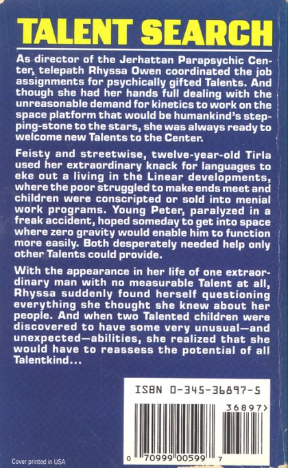 “[Anne] McCaffrey’s world of the Talented is as vivid as that of Pern and its dragons.”—Publishers WeeklyEarth has reached its darkest moment. In subterranean warrens, the poor eke out precarious lives where jobs are scarce and children are sold for labor—while on the surface, a privileged few enjoy lives of luxury. As the population surges and unrest spreads, a disaster of epic proportions seems inescapable. The only hope: a platform under construction in space from which starships will be launched to colonize distant planets. But the project is critically behind schedule.In the midst of the chaos, Rhyssa Owen and her fellow Talents—telepaths who read minds, kinetics who manipulate matter, and precogs to whom the future is an open book—struggle to survive. Then two children are discovered whose extraordinary psychic gifts have the potential to avert the looming catastrophe—or hasten its ominous arrival. . . .