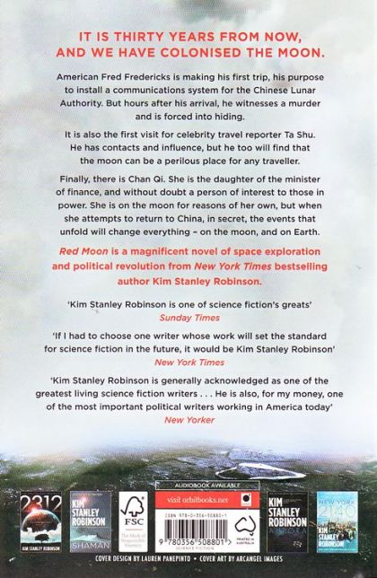 IT IS THIRTY YEARS FROM NOW, AND WE HAVE COLONIZED THE MOON. American Fred Fredericks is making his first trip, his purpose to install a communications system for China's Lunar Science Foundation. But hours after his arrival he witnesses a murder and is forced into hiding. It is also the first visit for celebrity travel reporter Ta Shu. He has contacts and influence, but he too will find that the moon can be a perilous place for any traveler. Finally, there is Chan Qi. She is the daughter of the Minister of Finance, and without doubt a person of interest to those in power. She is on the moon for reasons of her own, but when she attempts to return to China, in secret, the events that unfold will change everything - on the moon, and on Earth. RED MOON is a magnificent novel of space exploration and political revolution from New York Times bestselling author Kim Stanley Robinson. Praise for Kim Stanley Robinson: 'Robinson is one of the world's finest working novelists, in any genre' Guardian 'Polymathic, visionary brilliance' Financial Times 'Robinson's work has a strong, intelligent social conscience' GQ 'Robinson blends mystery and suspense with lyrical evocation of a complex future' Sunday Telegraph 'Kim Stanley Robinson is one of science fiction's greats' Sunday Times Recent titles by Kim Stanley Robinson: 2312 Shaman Aurora New York 2140.