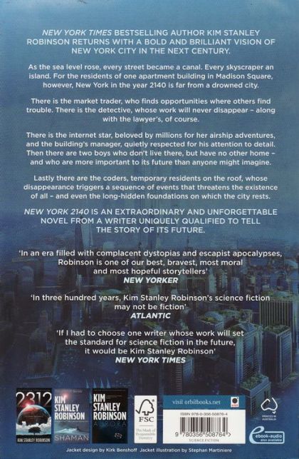 "As the sea level rose, every street became a canal. Every skyscraper an island. For the residents of one apartment building in Madison Square, however, New York in the year 2140 is far from a drowned city. There is the market trader, who finds opportunities where others find trouble. There is the detective, whose work will never disappear--along with the lawyer's, of course. There is the internet star, beloved by millions for her airship adventures, and the building's manager, quietly respected for his attention to detail. Then there are two boys who don't live there, but have no other home--and who are more important to its future than anyone might imagine. Lastly there are the coders, temporary residents on the roof, whose disappearance triggers a sequence of events that threatens the existence of all--and even the long-hidden foundations on which the city rests."--