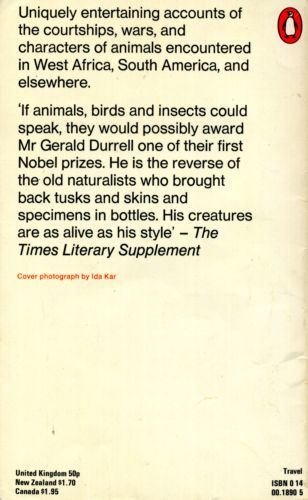 'I once travelled back from Africa on a ship with an Irish captain who did not like animals. This was unfortunate, because most of my luggage consisted of about two hundred odd cages of assorted wildlife . . .' Gerald Durrell's accounts of the animals he encountered on his travels were some of the first widely shared descriptions of the world's most extraordinary animals. Moving from the West Coast of Africa to the northern tip of South America - and elsewhere - Durrell observes the courtships, wars and characters of a variety of creatures, from birds of paradise, to ants and anteaters, among others.
