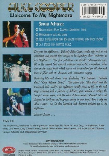 In this live performance, Alice Cooper becomes a character that must fight his way through several stages of a demented nightmare. Repeatedly he finds damnation and salvation in recurring waves, as he encounters man-eating black widows, is attacked by a giant monster he can't control, encounters a voodoo man, and throws around a literal ragdoll. In between and during the action Alice/Steven (Alice Cooper) and his band (Dick Wagner, Steve Hunter, White Glan, Jozef Chirowski) mantain a macabre circus atmosphere as he continues to play the soundtrack to his own demise. His lyrics rarely get interrupted except by the screams of himself or his vitctims as you see his role reverse several times from powerful to powerless. He dances with a corpse he calls "Cold Ethyl" (Sheryl Cooper) and finds himself displaying a gamut of emotions with a strong emphasis on fear.