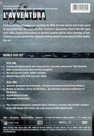 Claudia and Anna join Anna's lover, Sandro, on a boat trip to a remote volcanic island. When Anna goes missing, a search is launched. In the meantime, Sandro and Claudia become involved in a romance despite Anna's disappearance, though the relationship suffers from guilt and tension.