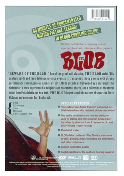 The Blob melds '50s schlock sci-fi and teen delinquency pics even as it transcends these genres with strong performances and ingenious special effects. Made outside of Hollywood by a maverick film distributor, a crew experienced in religious and educational shorts, and a collection of theatrical talent from Philadelphia and New York, The Blob helped launch the career of Steve McQueen and Burt Bacharach.