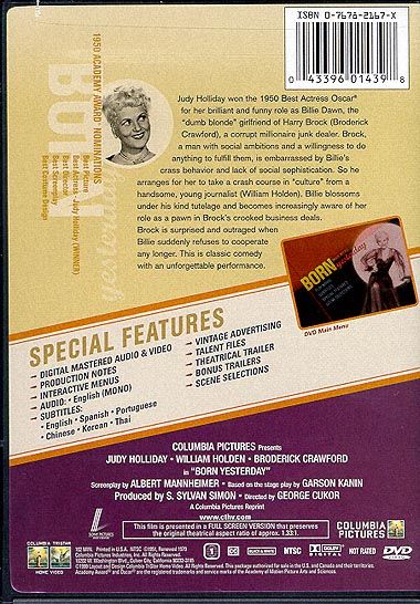 Uncouth, loud-mouth junkyard tycoon Harry Brock descends upon Washington D.C. to buy himself a congressman or two, bringing with him his mistress, ex-showgirl Billie Dawn.