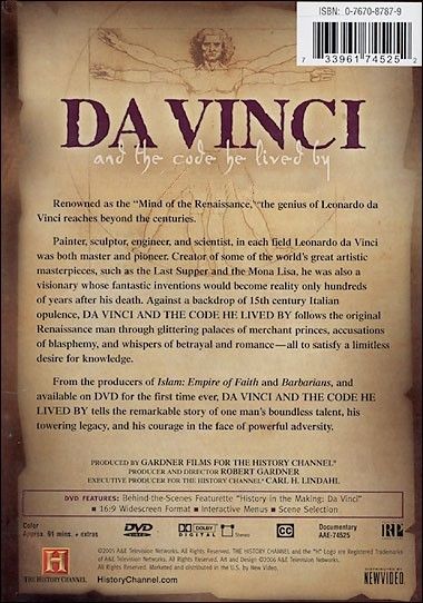 Renowned as the "Mind of the Renaissance," the genius of Leonardo da Vinci reaches beyond the centuries. Painter, sculptor, engineer, and scientist, in each field Leonardo da Vinci was both master and pioneer. Creator of some of the world's great artistic masterpieces, such as the Last Supper and the Mona Lisa, he was also a visionary whose fantastic inventions would become reality only hundreds of years after his death. Follow the original Renaissance man through glittering palaces of merchant princes, accusations of blasphemy, and whispers of betrayal and romance--all to satisfy a limitless desire for knowledge. From the producers of Islam: Empire of Faith and Barbarians, and available on DVD for the first time ever, DA VINCI AND THE CODE HE LIVED BY tells the remarkable story of one man's boundless talent, his towering legacy, and his courage in the face of powerful adversity.