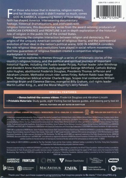 God in America explores the tumultuous 400-year history of the intersection of religion and public life in America, from the first European settlements to the 2008 presidential election. This series examines how religious dissidents helped shape the American concept of religious liberty and the controversial evolution of that ideal in the nation's courts and political arena; how religious freedom and waves of new immigrants and religious revivals fueled competition in the religious marketplace; how movements for social reform -- from abolition to civil rights -- galvanized men and women to put their faith into political action; and how religious faith influenced conflicts from the American Revolution to the Cold War.
