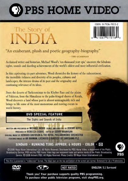The Story of India is a BBC TV documentary series, written and presented by historian Michael Wood, about the 10,000-year history of the Indian subcontinent in six episodes. It was originally aired on the BBC in six episodes in August and September 2007 as part of the BBC season "India and Pakistan 07", which marked the 60 years independence of India and Pakistan. In the United States, PBS broadcast the series on three consecutive Mondays, 5 January to 19 January 2009, from 9pm to 11pm. In Australia, the series was broadcast on ABC1 each Sunday at 7:30pm from 29 March until 3 May 2009. An accompanying text was published by BBC Books. As in most of his documentaries, Wood explains historical events by travelling to the places where they took place, examining archeological and historical evidence at first hand and interviewing historians and archaeologists, as well as chatting with local people.