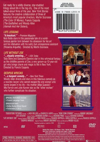 Get ready for a wildly diverse, star-studded trilogy about life in the big city. One of the most-talked about films in years, New York Stories features the creative collaboration of three of America's most popular directors, Martin Scorsese, Francis Coppola, and Woody Allen.