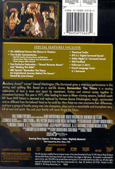 After leading his football team to 15 winning seasons, coach Bill Yoast is demoted and replaced by Herman Boone – tough, opinionated and as different from the beloved Yoast as he could be. The two men learn to overcome their differences and turn a group of hostile young men into champions.