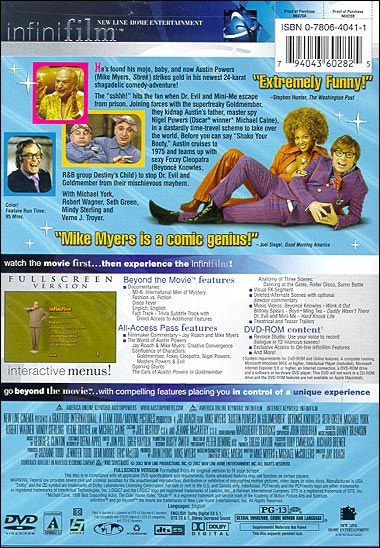 The world's most shagadelic spy continues his fight against Dr. Evil. This time, the diabolical doctor and his clone, Mini-Me, team up with a new foe—'70s kingpin Goldmember. While pursuing the team of villains to stop them from world domination, Austin gets help from his dad and an old girlfriend.