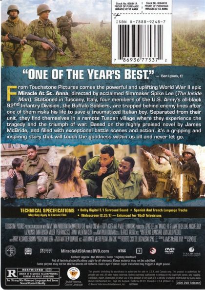 Miracle at St. Anna chronicles the story of four American soldiers who are members of the all-black 92nd "Buffalo Soldier" Division stationed in Tuscany, Italy during World War II.