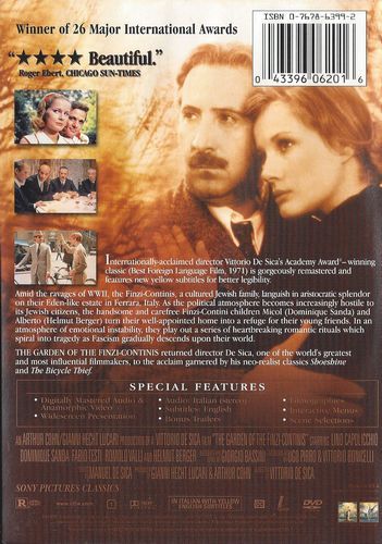 Amid the ravages of World War II, the Finzi-Continis, a cultured Jewish family, languish in aristocratic splendor on their Eden-like estate in Ferrara, Italy. As the political atmosphere becomes increasingly hostile to its Jewish citizens, the handsome and carefree Finzi-Contini children Micol (Dominique Sanda) and Alberto (Helmut Berger) turn their well-appointed home into a refuge for their young friends. In an atmosphere of emotional instability, they play out a series of heartbreaking romantic rituals which spiral into tragedy as Fascism gradually descends upon their world.