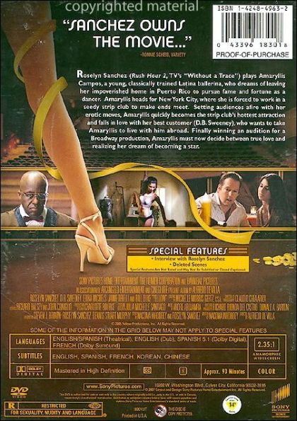 Roselyn Sanchez (Rush Hour 2, TV's "Without a Trace") plays Amaryllis Campos, a young, classically trained Latina ballerina, who dreams of leaving her impoverished home in Puerto Rico to pursue fame and fortune as a dancer. Amaryllis heads for New York City, where she is forced to work in a seedy strip club to make ends meet. Setting audiences afire with her erotic moves, Amaryllis quickly becomes the strip club's hottest attraction and falls in love with her best customer (D.B. Sweeney), who wants to take Amaryllis to live with him abroad. Finally winning an audition for a Broadway production, Amaryllis must now decide between true love and realizing her dream of becoming a star.