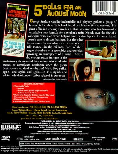George Stark, a wealthy industrialist and playboy, gathers a group of bourgeois friends at his isolated island beach house for the weekend. His guest of honor is Gerry Farrell, a brilliant chemist who has discovered a remarkable new formula. Farrell doesn't care to discuss business, but the businessmen in attendance are determined to talk money--in the millions. Each of them angers the others with secrets bids and back alley deals, spawning an atmosphere of distrust, exacerbated by the sexual intrigue in the air between the men and their various wives and mistresses. Suspicions begin to rise when the guests begin to turn up dead, one by one! Mario Bava strikes again--and again, and again--in this stylish and wicked whodunit.