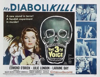 Day is the former secretary and current mistress of a wealthy businessman. She hires O'Brien to kill him and assume her lover's identity so they can share his wealth. O'Brien wants all the money for himself, though, and comes close to killing Day. London, a woman O'Brien picks up, is actually the fiancee of the man he and Day have murdered, and the police arrive to arrest the two. THE 3RD VOICE is an interesting suspense film. The bulk of the film delineates the crime nicely, with good plotting and some fine camerawork. The characterizations are quite adept, with O'Brien giving a fine tour de force performance