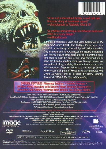 A man is kidnapped by aliens and returns some years later in the form of four legged crablike monster.He rapes a woman and a fully grown human explodes from her womb the next day. "Xtro" is a rather unpleasant low-budget horror gem that is definitely not for the squeamish. The film offers plenty of strange atmosphere and lots of cheap but effective special effects. The gore is suitably nasty and the birth scene is truly disgusting and memorable. The cast is generally decent and the finale is extremely grotesque. Later Bond girl Maryam D'Abo plays the nanny and has a wonderful nude scene.