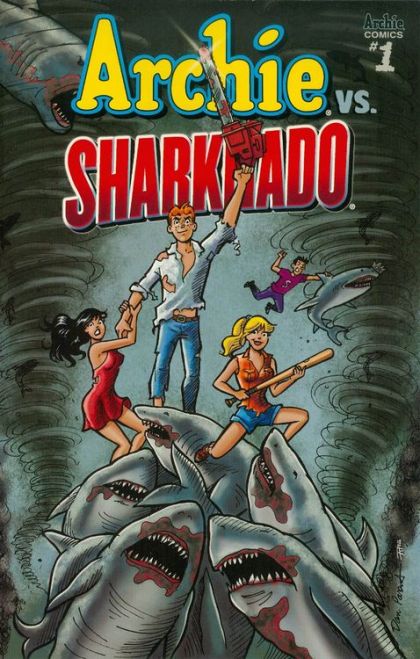 It's that time of year in Riverdale! The end of the school year. Time for beaches, barbecues, fun in the sun and... sharknados!?! That's right, get ready as Archie and the gang brave the storm of a tornado full a sharks that riffs off the pop culture phenomenon known as Sharknado! The story unfolds as sharknados are spotted on the 'Feast' Coast! Our heroines have to figure out how to get back to Riverdale, where the storm is about to hit next. Soon Archie and the gang go, go, go as they battle the Sharknado-ravaged Riverdale! Who will live? Who will die? Will this take a bite out of the end-of-the-year prom? Uh... probably! The comic book action is also concurrent with the plot of Sharknado 3 and hits stands right before the film's premiere in July on Syfy. Written by the Sharknado trilogy director Anthony C. Ferrante with Dan Parent.