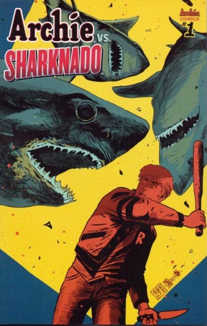 It's that time of year in Riverdale! The end of the school year. Time for beaches, barbecues, fun in the sun and... sharknados!?! That's right, get ready as Archie and the gang brave the storm of a tornado full a sharks that riffs off the pop culture phenomenon known as Sharknado! The story unfolds as sharknados are spotted on the 'Feast' Coast! Our heroines have to figure out how to get back to Riverdale, where the storm is about to hit next. Soon Archie and the gang go, go, go as they battle the Sharknado-ravaged Riverdale! Who will live? Who will die? Will this take a bite out of the end-of-the-year prom? Uh... probably! The comic book action is also concurrent with the plot of Sharknado 3 and hits stands right before the film's premiere in July on Syfy. Written by the Sharknado trilogy director Anthony C. Ferrante with Dan Parent.