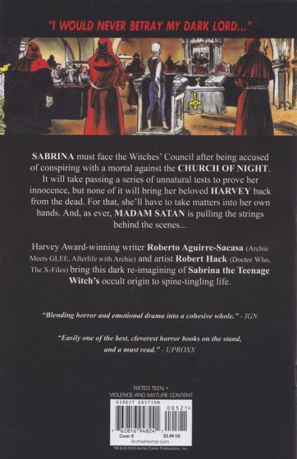 Sabrina has to face the Witches Council for an accusation of conspiring with a mortal against the Church of Night. It will take a series of unnatural tests to prove her innocence, but none of it will bring her beloved Harvey back. She'll have to take matters into her own hands to find Harvey's missing soul. Recruiting two other young witches (from a neighboring coven), Sabrina holds a séance, but as ever, Madame Satan is pulling the strings behind the scenes, and what Sabrina taps into is much more dangerous-and diabolical. And will send our beloved teen witch on an epic quest. For TEEN+ readers.