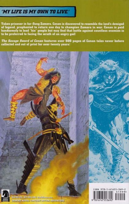 Taken prisoner in far-flung Zamora, Conan is discovered to resemble the land's demigod of legend, prophesied to return to champion Zamora in war. Conan is paid handsomely to lead 'his' people, but finds that battle against countless enemies is to be preferred to facing the wrath of an angry god! Collects Marvel's The Savage Sword of Conan the Barbarian #181-#190. - Over 500 pages, value priced!