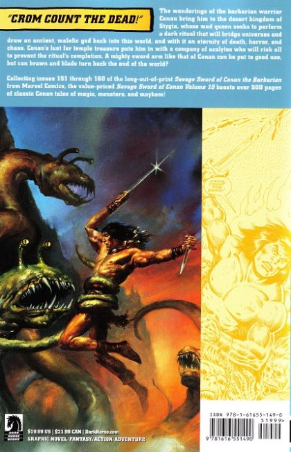 'Crom count the dead!' Conan's wanderings bring him to the desert kingdom of Stygia, whose mad queen seeks to perform a dark ritual that will bridge universes and draw an ancient, malefic god back into this world, and with it an eternity of death, horror, and chaos! Showcasing stories from Marvel's Savage Sword of Conan the Barbarian #151-#160.