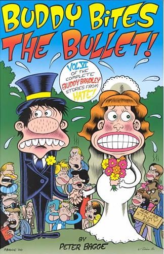 by Peter Bagge Buddy Bites The Bullet is the final arc in the 15-year story of Buddy Bradley, collecting the last five issues of Bagge's legendary comic book series Hate. Could it be that Buddy and his maniacal girlfriend Lisa finally decide to? grow up? Perhaps, but not before they verge toward an utterly hilarious disintegration with a little help from their friends. SC, 7x10, 120pg, FC