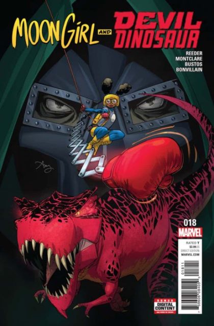"THE SMARTEST THERE IS" CONCLUDES! • MOON GIRL has a big, red T. rex. Now she needs to pull out even bigger guns. • The X-MEN, MS. MARVEL, HULK, DOCTOR STRANGE, THE THING, IRONHEART, KID KREE and even a familiar gang of Stone Age savages come together to confront an enemy that can't possibly be DOCTOR DOOM!!! • It's a battle royale as LUNELLA LAFAYETTE has a final test she needs to ace, and to prove to the world she's THE SMARTEST THERE IS! Rated T