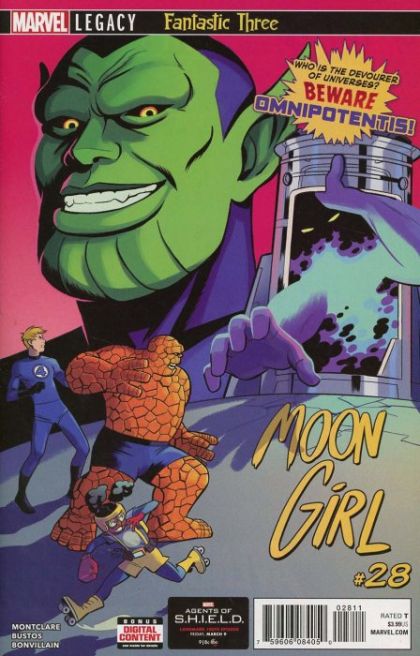 FANTASTIC THREE PART 4 • Smarter than MOON GIRL? Stronger than the THING? Hotter than the HUMAN TORCH? • What mystery man can outmatch Marvel's newest hero family? • The FANTASTIC THREE are put to the test, and this is one exam LUNELLA LAFAYETTE - the Smartest There Is - might not pass (at least not with a little help)! Rated T