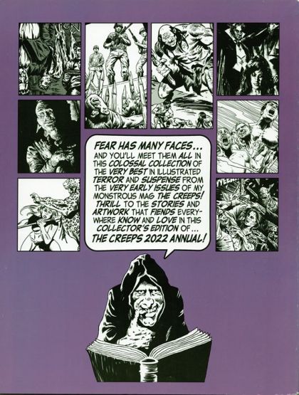 The Creeps 2022 Spooktacular recreates the iconic Warren horror annuals popular in the 1970's by emulating Warren's early page layouts. This Annual edition collects of the best stories from the early years of The Creeps in a perfect bound collector's edition. Each issue is a highly collectible instant classic!