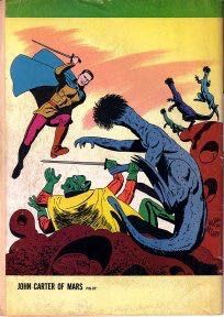 Picturized version adapted from the novel “The Gods of Mars” by Edgar Rice Burroughs, copyright. Story is a reprint from Dell Comic, Four Color #437, February 1952. Back cover and inside covers feature pinups.