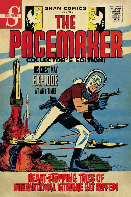 Heart-stopping tales of international intrigue get riffed. Join the adventures of broken-down, has-been CIA spook Chuck Upton as he gets a second chance. Left for dead during a failed black ops mission, his body was completely reconstructed using alien technology. By day he poses as a mild mannered NATO envoy, traveling the world ironing out tricky diplomatic conflicts. But when diplomacy fails, he dons his preposterous costume and outlandish titanium helmet and solves those conflicts with extreme violence as The Pacemaker. The stress usually triggers a heart attack mid-fight, as his alien technology usually fails him, but he blows up lots of things in the process.
