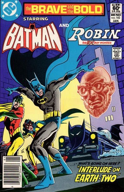 "Interlude on Earth-Two": During a lightning storm in Gotham City of Earth-Two, Robin and Starman learn about the return of the long-forgotten Hugo Strange, but Starman is seriously injured by a hologram of the evil professor, who then steals the Cosmic Rod and Robin is forced to work alone.