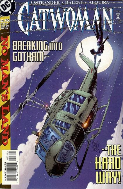 Mercy Graves shot Catwoman as they fought. Now Catwoman is halfway to dead, and remembering how a man named Del Halpern caught her lifting a wallet at his cheap carnival. His solution? Make her a carny. She learned from the folks there: contortions, sleight of hand, balance. But the most important lesson Del taught her as a died, of a stunt gone wrong. His back crushed and his brain swelling, he told her the rules, "Never let 'em see you cry, never let 'em see you're hurt." Summoning that, Catwoman claws her way out of the river a reaches a bolthole left from her days as a mayoral candidate. There she bandages herself and looks at how to reach Batman in Gotham. Finally, she coerces a helicopter pilot to take her in. With Vin Nastacio in hot pursuit. She reaches Robinson Park, then Vin calls for her surrender. But Azrael has other ideas! Catwoman delivers the original discs to Batman, Azrael delivers himself and Vin to Leslie Tompkins, and Catwoman finds a rooftop where her injuries catch up to her, and she passes out...