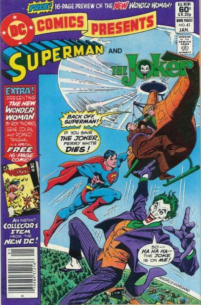 "The Terrible Tinseltown Treasure-Trap Treachery!": Superman must briefly team with the Joker to find the whereabouts of a comedian-cum-crime boss's hidden hoard, which the Prankster is also seeking.