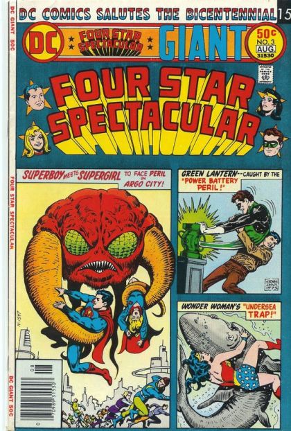 "Power Battery Peril!": While charging his power ring, Green Lantern is suddenly sucked into it and transported to a world where it's heroes (Energiman, Golden Blade, Strong Girl, and Magicko) have been captured by the tyrant Vant Orl. Green Lantern uses his power ring to fight off Vant Orl's various weapons and free's that worlds heroes. Imprisoning Vant Orl, Green Lantern is thanked by that worlds heroes before he returned home to tell Pieface about his adventure.