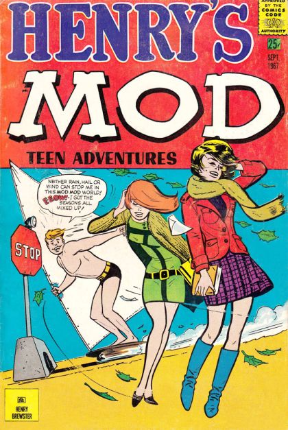 A combination of Teen Humor and Teen Adventure, this "two comics in one" features red-haired Henry Brewster and his pals-n-gals, including blonde Holly, brunette Debbie, a big muscleman named Animal, and a dorky genius named Weenie. All similarities to Archie and his gang must be purely coincidental. The stories feature Henry and his gang as crime fighters in a tricked-out jalopy with a cat logo on the side. Appropriate because they are the COOL CATS (Council Of Organized Laymen Conducting Always True Services). In this issue the stories bounce between teen hijinks and mild crime capers.