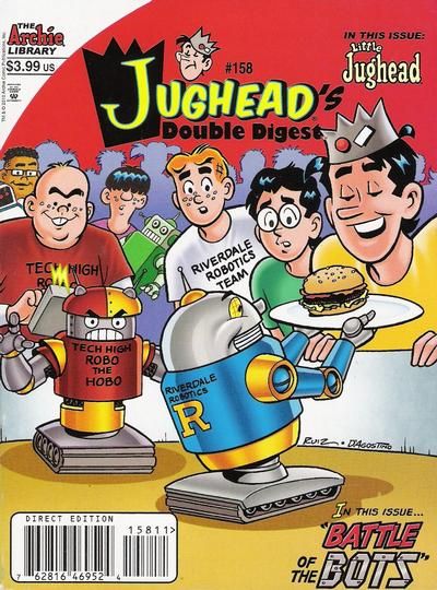 (W) George Gladir (A) Fernando Ruiz, Various Jughead doesn't make the basketball team as his parents hope, but Dilton and Chuck convince Jughead that his imagination would make him a formidable teammate on the robotics team. Can Jughead's unique intelligence help machines with artificial intelligence score baskets? Then, the robotics team takes on various other problems at Riverdale High - like school budget cuts in the maintenance and cafeteria crews, tardy students and more. But have they created a Frankenstein's monster in the process?