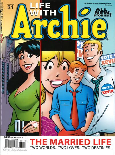 The Eisner-nominated series continues with Life With Archie #31! In 'Archie Marries Veronica,' Riverdale's been hit hard by a string of misfortunes. Most recently there was a horrific mass shooting at a nearby mall, and then Fred Mirth fled town and took most of his money and businesses with him! These unfortunate events have been affecting the Riverdale gang pretty hard-Jughead's Chocklit Shoppe is unlikely to succeed, and Veronica's been arrested for fraud! Her connection to Kevin isn't helping his candidacy much, either. How can Riverdale possibly recover? Then, in 'Archie Marries Betty,' Archie's having a hard time being the smiling husband he needs to be, especially since he never seems to get to see his wife anymore! Can Archie stay supportive of Betty, or will he make a choice he'll end up regretting? And Archie's not the only one with relationship woes. Jellybean had to dump her boyfriend Davey after he tried to rob the Chocklit Shoppe! Unfortunately the burglaries weren't the worst of the crimes to hit Riverdale. What's happened to the idyllic small town, USA?