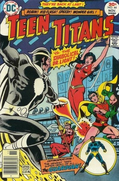 After a two-year hiatus, during which Mr. Jupiter has closed down his training program and Mal has been left in charge of the Teen Titans base and equipment while the team formally broke up so that its super-hero members could pursue their individual careers, the members receive an emergency signal which rallies Robin, Kid flash, Wonder Girl, Speedy, and Mal to their former headquarters. This turns out to be a trap set by Dr. Light, who intends to use the Titans as bait to trap the Justice League. He defeats the team in battle and captures Robin and Wonder Girl, then stops Kid flash and Speedy before they can warn their adult counterparts of his plans. Mal appropriates an exo-skeleton (used against Robin in Batman #192) and the Guardian’s costume (left in the keeping of Speedy, who is revealed as the Guardian’s nephew in Superman Family #191-194) from the Titans’ storeroom to become the new Guardian, in which identity he is able to free his captive fellow members. Together, the revived Titans defeat Dr. Light and stop his plan to take over the JLA satellite.