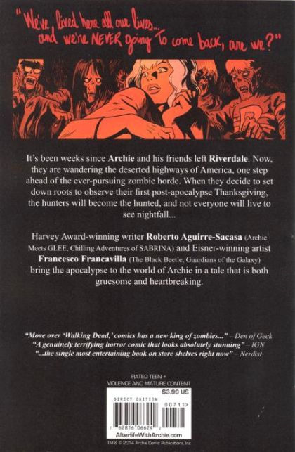 'BETTY RIP' Part 1 (of 6): 'Thanksgiving' THE SMASH HORROR HIT CONTINUES! It's been weeks since Archie and his friends left Riverdale. Now, they are wandering the deserted highways of America, one step ahead of the ever-pursuing vicious zombie horde. When they decide to set down roots to observe their first post-apocalypse Thanksgiving, Mr. Lodge leads a team into the forests of Pennsylvania to find dinner, but the hunters soon become the hunted, and not all of the gang will make it out of the woods alive